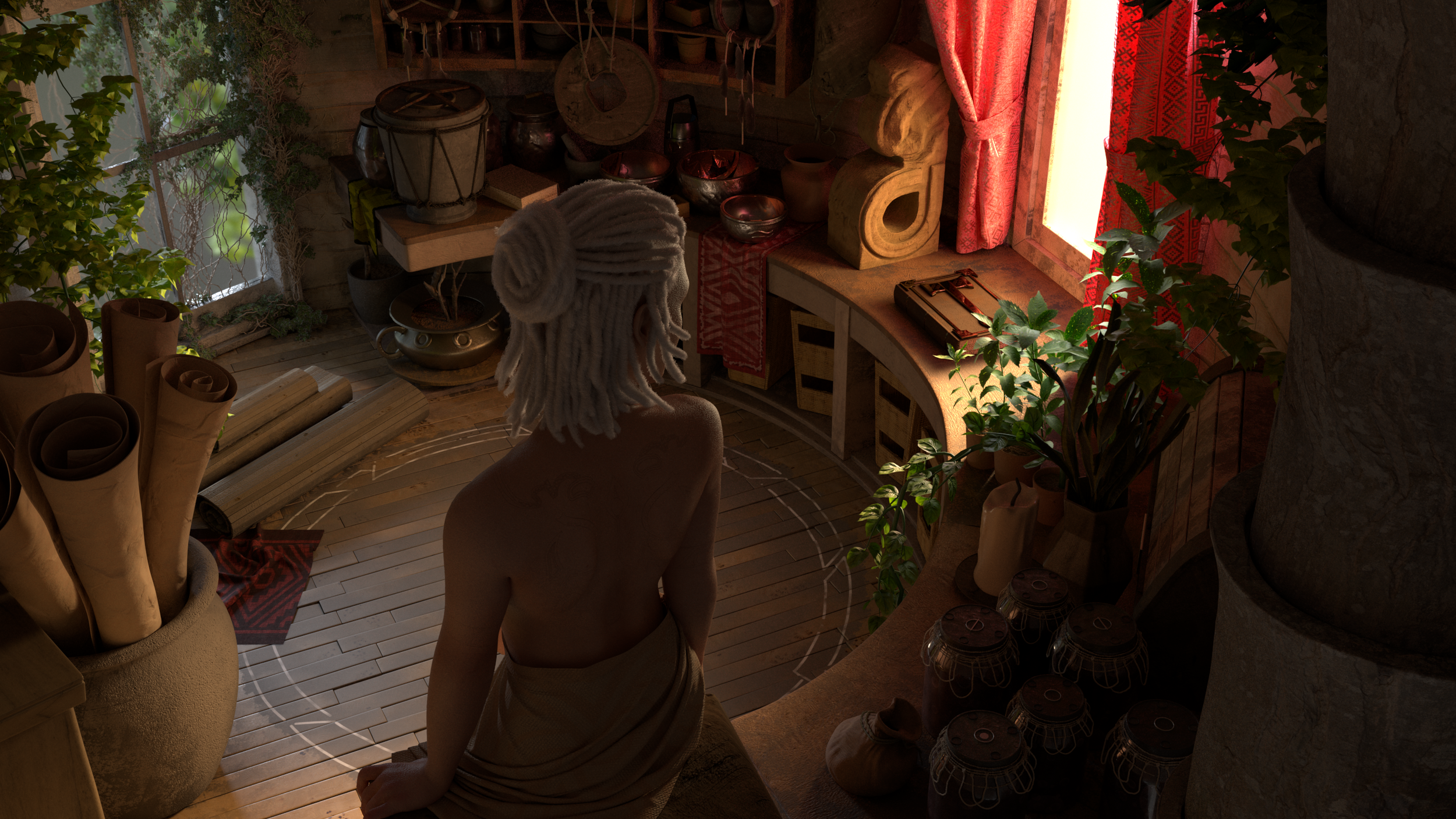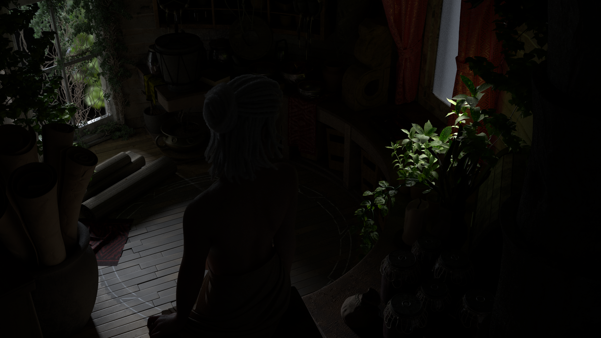 For this shot, my focus was to create a piece that would match the lighting from concept art, while also using color to help direct the viewer's eye across the scene. The software I used to create this piece included: Maya, Zbrush, Marvelous Designer, Speedtree, Xgen, Substance Painter, Mari, Vray, and Nuke.